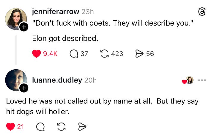 One of my all-time favorite writers made Musk’s ears burn this week. I’m not much on X, but I sure found a way to laugh.